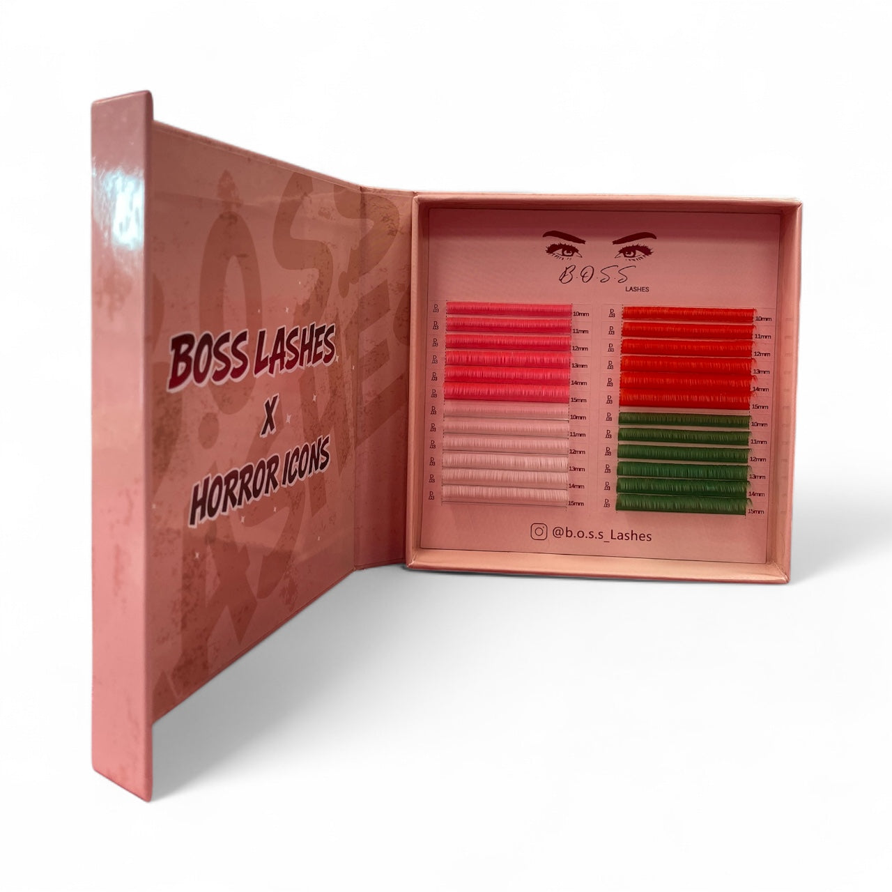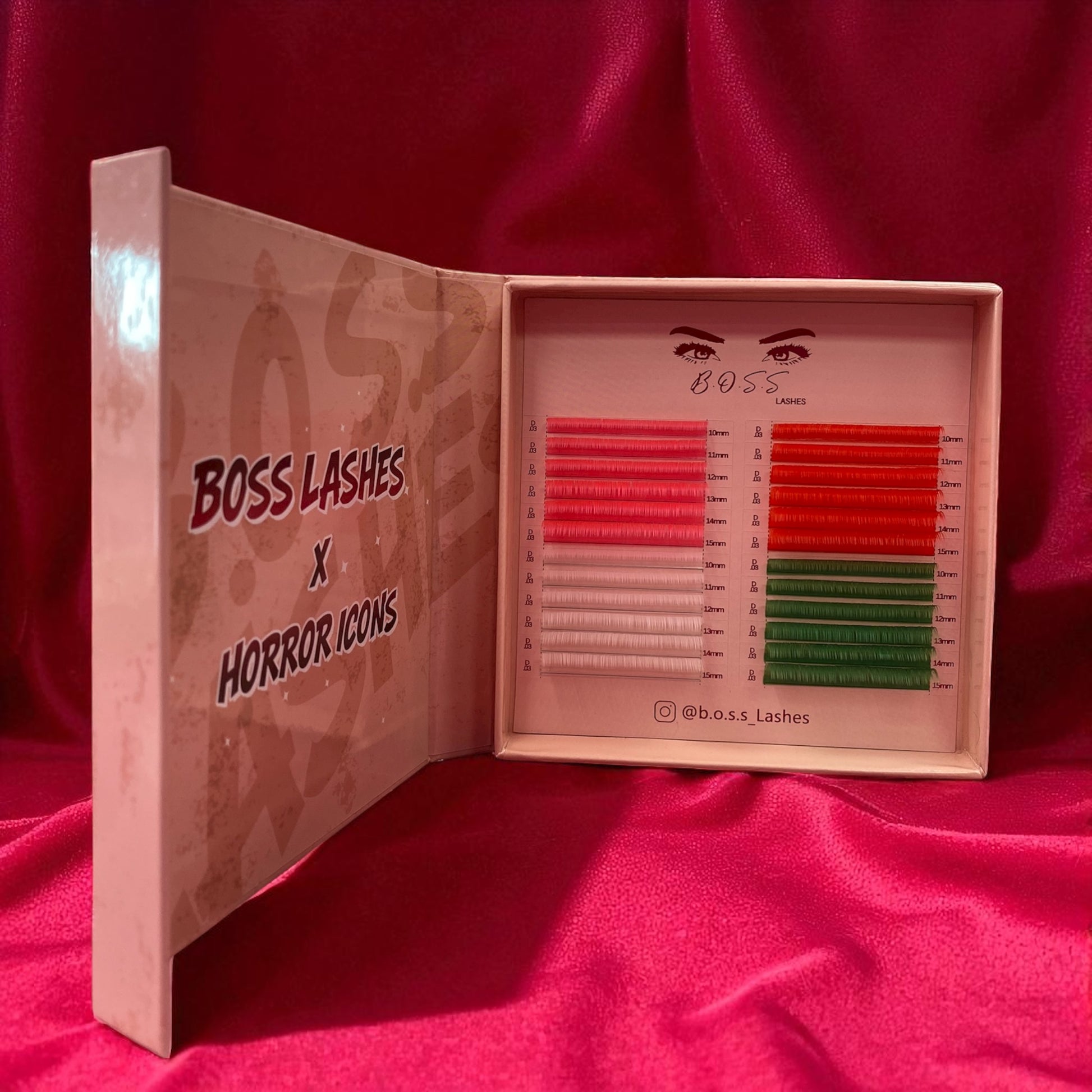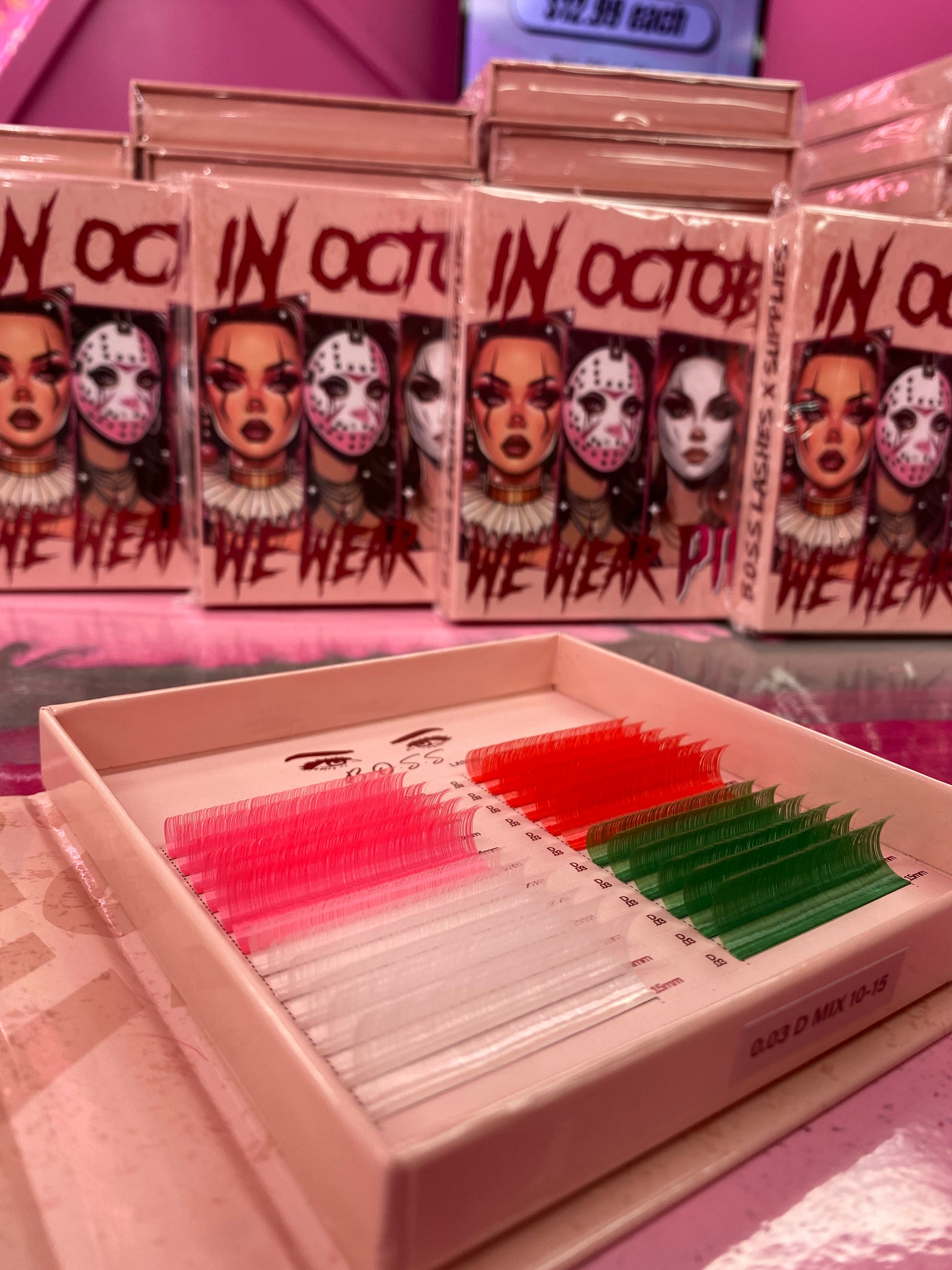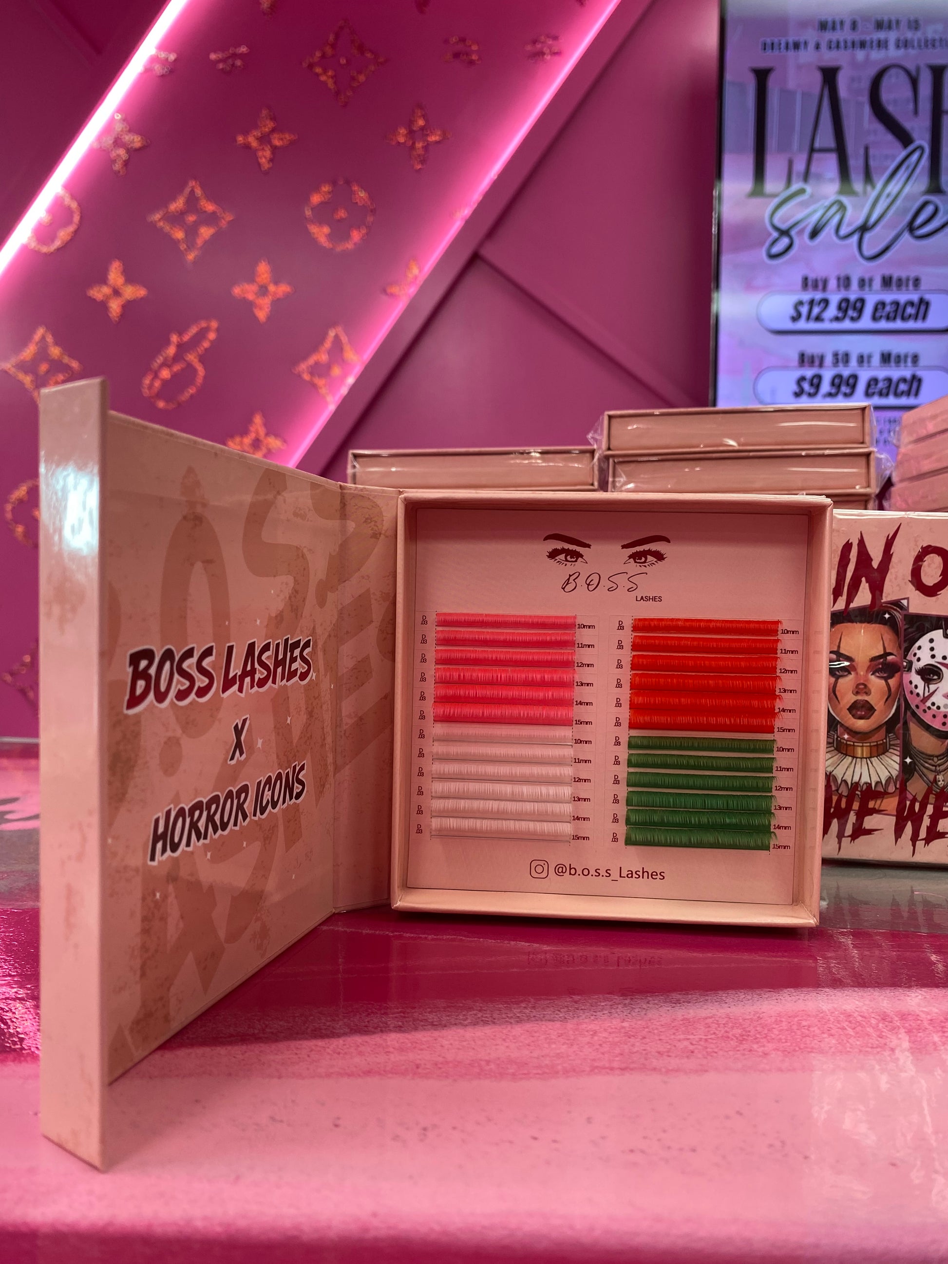 Experience the chic and fun side of Halloween with our Eyelash extensions pallet. In honor of 4 icons in horror films, this pallet features 4 beautiful shades - pink, white, red, and green. Perfect for adding a playful touch to your spooky look.💋